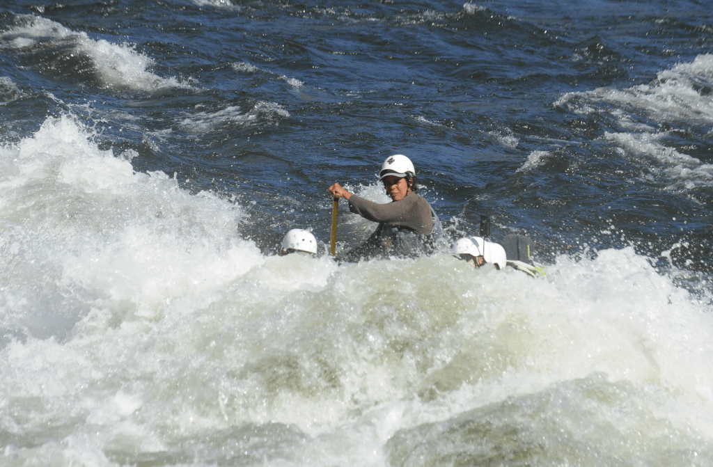 The Class 3 stretches of the river had acquired colorful names over the years, Hospital Bar, Trouble Maker, Satan’s Cesspool. In the beginning, we found the names humorous. By Satan’s Cesspool, not so much. The roar of the river drowned out all sound as we plunged into the Cesspool. The raft dropped from under us and a wall of angry water knocked us on our backs. When the screaming stopped and we regained our perches, I noticed Tommy’s Mom floating by, bobbing up and down as the water raced her over boulder after boulder, followed shortly by the young woman who used to be steering the other raft. Farrell screamed out, “Forward, forward, forward” and we dug our paddles into the churning water. We caught up with Tommy’s Mom, grabbed her and paddled hard toward the side of the river where the current was less strong. At the shoreline, we were out of the churning water but the current still pinned us against some thick tree branches, reaching out over the river. The other raft had hold of their steerer and was racing toward us. The two rafts collided at the shoreline sending us all to our knees. We still had a grip on Tommy’s Mom and she had a death grip on her paddle. With all my strength, I couldn’t separate her from it. I kept repeating, “Let go of the paddle” until the light returned to her eyes and she gently handed it to me. I passed the paddle to the back of the raft and Farrell yanked her aboard. We passed Tommy’s Mom to the other raft and with both floaters now rescued and after a mighty struggle to regain the river, we continued on.