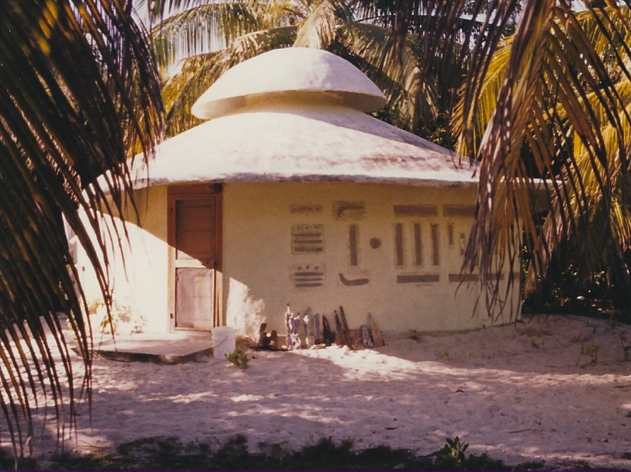 One day we went on a hike in the jungle along a path that paralleled the sea. There are things in that jungle that will kill you, in particular, panthers and large constrictors. We carried our knives on our belts. We walked for an hour or so and came upon several, ferro cement, dome buildings, painted white to defend against the heat. There were several of them clustered together making up what we guessed was a hotel. In the middle was an open air dining room, beautifully furnished in rattan and stained wood that spoke of taste and old money. We wandered in and announced our presence and shortly, an attractive, older woman, emerged from a back room and greeted us in English with a strong French accent. I told her we were staying in Placencia and were exploring the coast. Ian asked if we could purchase a couple of sodas. She said they weren’t open to the public but told us to sit at one of the tables, in the shade and that she’d see what they had.. She came back with two sodas with straws sticking out of the tops. She sat with us for a while, asking about our lives and talking of hers in Paris, where she had grown up. I felt a little like Captain Willard in the French Plantation scene. What was she doing in the middle of this jungle, so far from Paris and the life she had known? It was getting late in the day and we thanked her again, said goodbye and headed back.