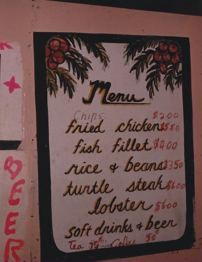 The British Air Force had pulled out of Placencia and Belize a few years before and the barracks had been left to the ravages of the tropics. The first night, we had to clear out the spiders, some of which were the size of a woman’s fist. The blankets were too far gone with mildew to be of any use but it was a warm night and we got thru it. The next morning, over breakfast at Momma’s place, I mentioned the blankets and she sent a young man around to collect them. He returned near sunset with washed, dried and mildew free, blankets. We now had all we needed.